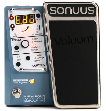 The Sonuus Voluum pedal sticks out among multi-effect guitar pedals because it allows you to control up to five effects with a single expression pedal.