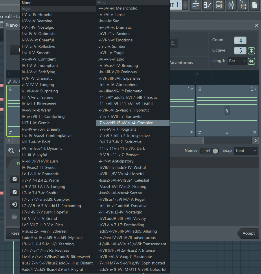 • Conventional/Adventurous Slider that lets you select whether you want more generic chord progressions or more novel