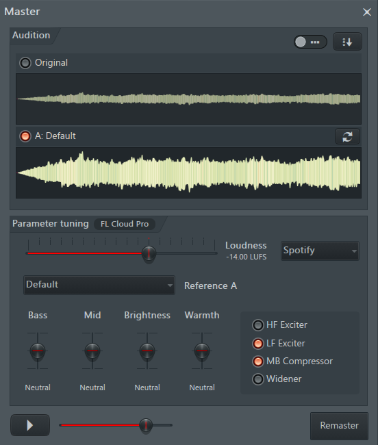 Customize various parameters like dynamics and stereo width. You can tailor your master as per your preferences.